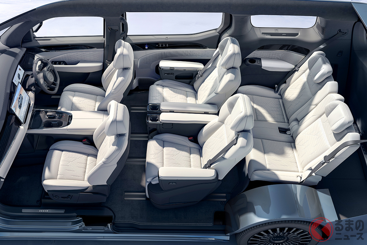 ZEEKR 009 擁有全長 5209mm、全寬 2024mm、全高 1812mm 的壓倒性車身尺寸,在日本市場提供 6 人與 7 人座規格。