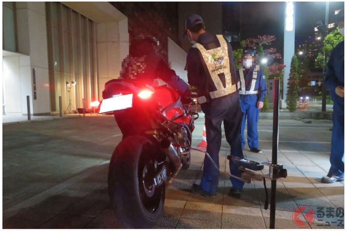 結果發現共有 24 輛車(其中包含 6 輛機車)存在違規狀況,包括非法安裝燈具、不符合噪音標準的排氣管(爆音排氣管)、旋轉部件突出(ハミタイ),以及最低離地高度不足(低車高)。