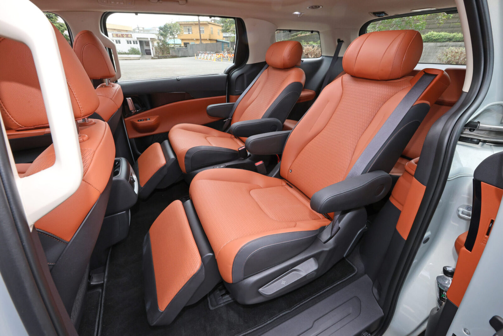 The new Carnival在5,155/1,955/1,775mm車身尺碼與3090mm軸距的支援下,不僅擁有寬敞的車室空間之外,透過座椅豐富的變化機能,來滿足乘坐與載物的需求。首先雙前座除具備電動調整與加熱、通風功能之外,也擁有相當好的支撐性與舒適性,副駕駛座的側面也設有椅背調整及前後滑移功能的按鈕,甚至還有一個貼心的Type C充電插孔。而第二排雙獨立座椅,除具備前後滑移以及快速傾倒與前推的功能之外,Signature頂規車型選配Premium Plus旗艦套件後,更能進一步享受第二排Ottoman尊爵頭等座椅所帶來的通風、加熱、腿部支撐以及一鍵放鬆模式等功能,充分展現後座對層峰買家的尊寵禮遇。