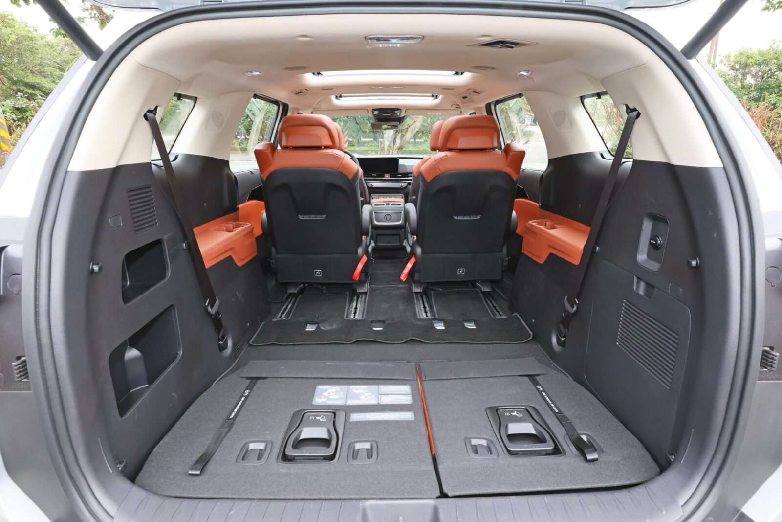 至於八人座車型,則是第二排座椅改採三人座設定,皆可獨立進行前後滑移調整,搭配可快速傾倒與前推功能,可帶來豐富的座椅變化機能,來滿足乘坐與載物的需求,尤其第二排中央座椅的椅背前倒後,則可形成兼具扶手及會議桌的功能;三張座椅連同後排共具備有共5組ISO-FIX的裝置,可對應多孩家庭的彈性乘坐需求,第三排座椅也同樣擁有寬敞的乘坐空間。另外,在行李廂空間部分,在滿載下擁有627公升,若將第三排座椅收納至底板內,加上第二排座椅前推至軌道最前方,則可形成一2,905公升平坦的置物空間。