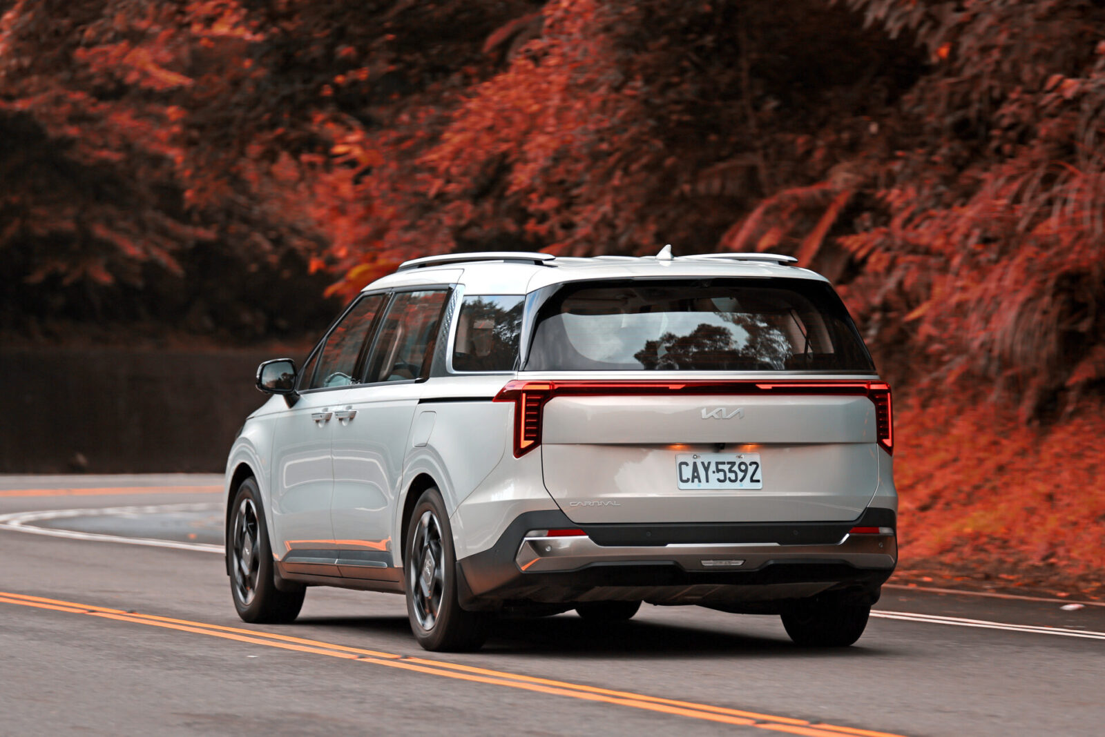 在動力方面,The new Carnival搭載Smartstream 2.2升渦輪增壓柴油直列式4缸引擎,搭配8速手自排變速箱,可提供194ps最大馬力與45kgm最大扭力。全車系標配Drive Mode可變行車駕馭系統,具備ECO/Normal/Sport/Smart四種駕駛模式來滿足不同駕駛需求,帶來卓越的駕駛樂趣與靈活操控,這具引擎無論起步加速或中段再加速性皆頗為輕快,加上變速箱綿密且迅速的換檔反應所帶來的順暢加速性,因此走行市區道路顯得十分游刃有餘,甚至高速時的再加速力道也頗為順暢充沛,整個動力輸出調性非常符合一款家庭或商務導向的大型MPV。此外,帶有些Q彈特性的阻尼設定,也讓Carnival擁有良好的坑洞與不平路面處理能力以及出色的行路質感,甚至不錯的支撐性讓過彎側傾現象抑制減少許多,帶來穩定且易掌控的行駛動態,加上轉向反應清晰不模糊,開起來俐落明快,整體駕馭感受兼顧了此級距買家所期待的舒適與穩定性。