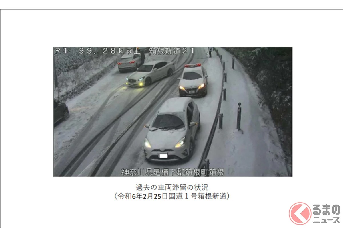 官方指出:「在國道17號新潟縣湯澤町芝原隧道附近,發生因使用一般輪胎導致無法爬坡的情況」,並強調「在雪地使用一般輪胎行駛屬於違法行為」。