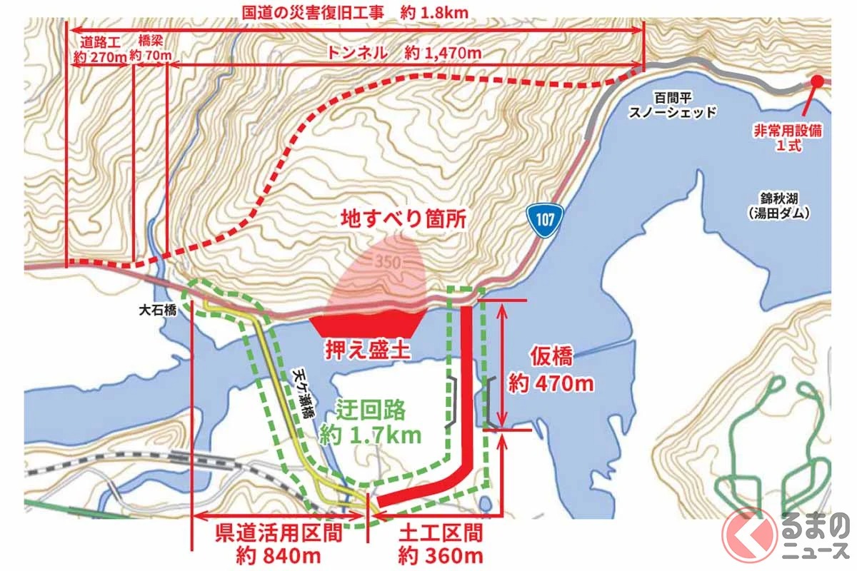 原文出處:東北の「日本海〜太平洋直通ルート」が復旧! 大規模地すべりで“寸断”も「新しいトンネル」開通で復活 「Uの字迂回」解消した国道107号 大石トンネル 11月末に一般開放