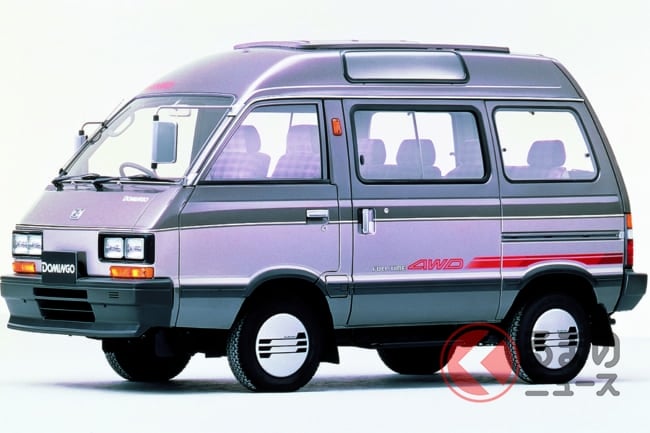這就是1983年登場、並銷售至1999年的「Domingo」。Domingo以輕型商用車的車身面板為基礎,透過加大保險桿與提升引擎排氣量,打造成小型乘用車。它是專為日本狹小道路環境打造的「微型小型多用途車」先驅,即便在停產超過25年後,其獨特的包裝設計仍令人懷念。Domingo的起源可追溯到被稱為「農道保時捷」的Subaru Sambar。1983年登場的初代Domingo,基於第四代Sambar,搭載1.0升(後擴增至1.2升)引擎,配置3列座椅實現7人乘坐。