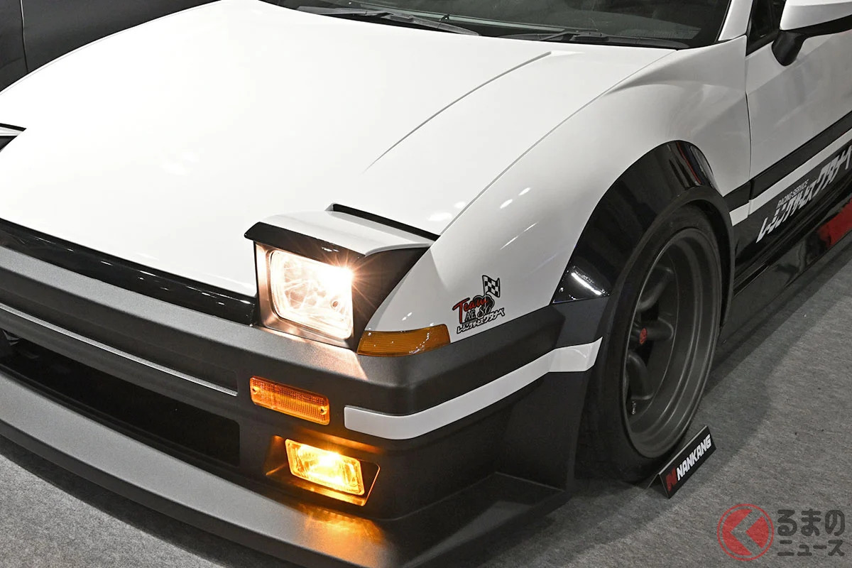 這輛車正是以前代 Toyota 86(ZN6型)為基礎,結合因《頭文字D》等作品而聲名大噪的經典名車 Toyota Sprinter Trueno(AE86型)所打造的「NEO86」。其實,「86」這個車名本身,就源自 AE86 型的 Corolla Levin/Sprinter Trueno,也就是俗稱的「Hachiroku」。同樣採用2門(3門)FR 跑車設定,兩者本就有不少共通點。因此在 NEO86 上,將 86 的前後保險桿改為如同 Sprinter Trueno 般的方正造型,並把頭燈改成跳燈風格,成功喚醒「Hachiroku Trueno」的經典形象。