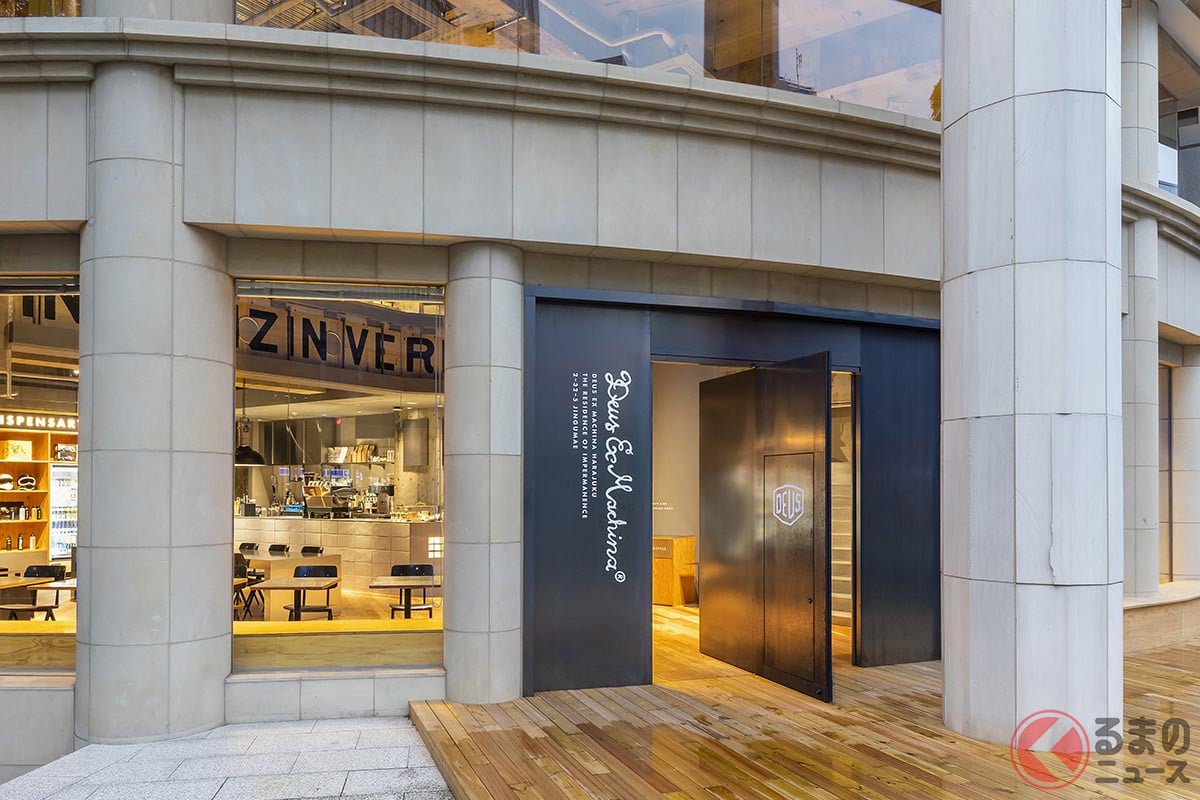 展示VITA的Deus EX Machina Harajuku,則是德斯品牌於2025年5月在東京原宿開設的旗艦店。店內販售以機車、衝浪與藝術等多元文化為核心的服飾商品,同時也設有咖啡空間,能夠享用原創餐點,成為結合生活風格與文化的複合式據點。