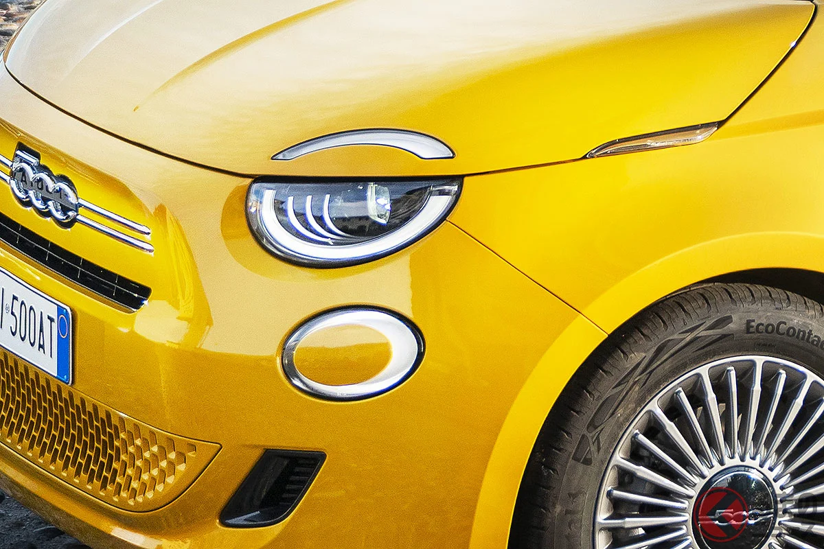 フィアット新型「500ハイブリッド」。丸目ライトとコンパクトなボディは従来の魅力を踏襲しつつ、最新アーキテクチャで大幅進化を果たした