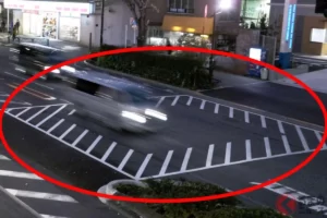 隨後,白色轎車猛打方向盤,幾乎強行變換到右側車道。然而,右側車道正好有一輛黑色廂型車與其並行。白色轎車完全沒有注意到黑色廂型車,直接撞上了廂型車的左側面,事故就這樣發生了。