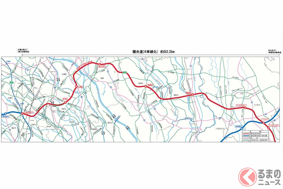 NEXCO東日本於2026年1月16日公布,圏央道筑波中央IC~筑波JCT之間全長4.3公里的路段將進行4車道化。