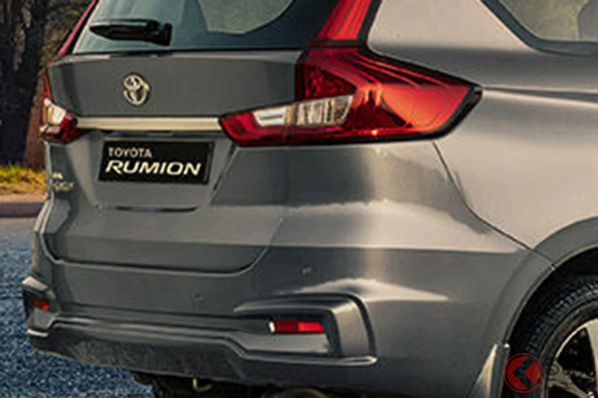 海外販售的 Rumion,其實是以鈴木3排座7人座MPV「Ertiga」為基礎的OEM車款。車身尺碼為全長4420mm、全寬1735mm、全高1690mm,軸距2740mm,整體比日本販售的 Sienta 還要稍大一些。後座車門並未採用日系MPV常見的電動滑門,而是傳統的鉸鏈式車門設計。