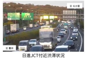 從周圍景色和道路結構等特徵可以判斷,這段影像是來自東名高速名古屋IC往小牧方向稍微前進的道路攝影機拍攝。