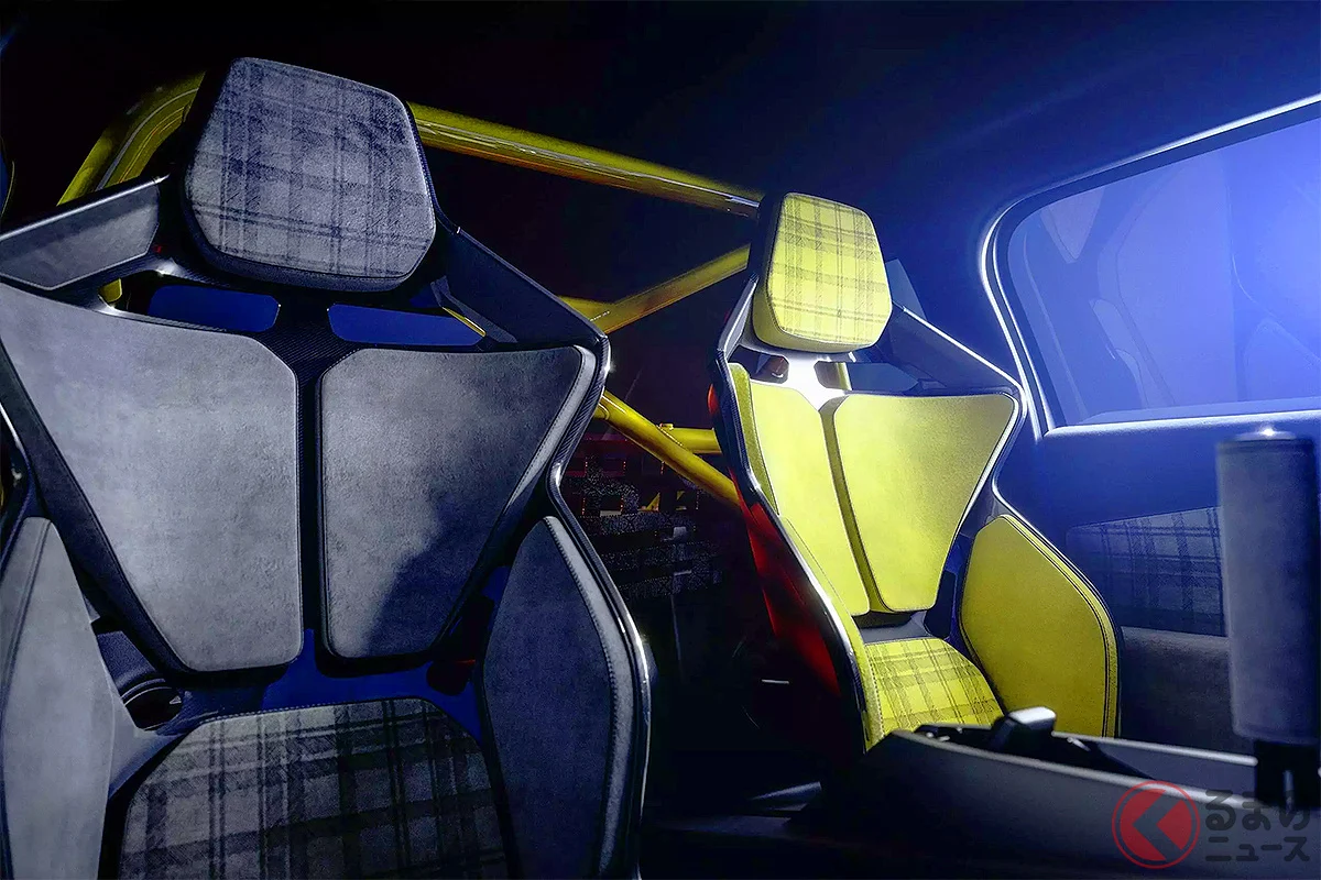 內裝同樣個性鮮明,左右座椅配色大膽不同,搭配亮黃色點綴、灰黑格紋布料,復古中帶有精緻感,展現雷諾獨特的玩心與設計感。
