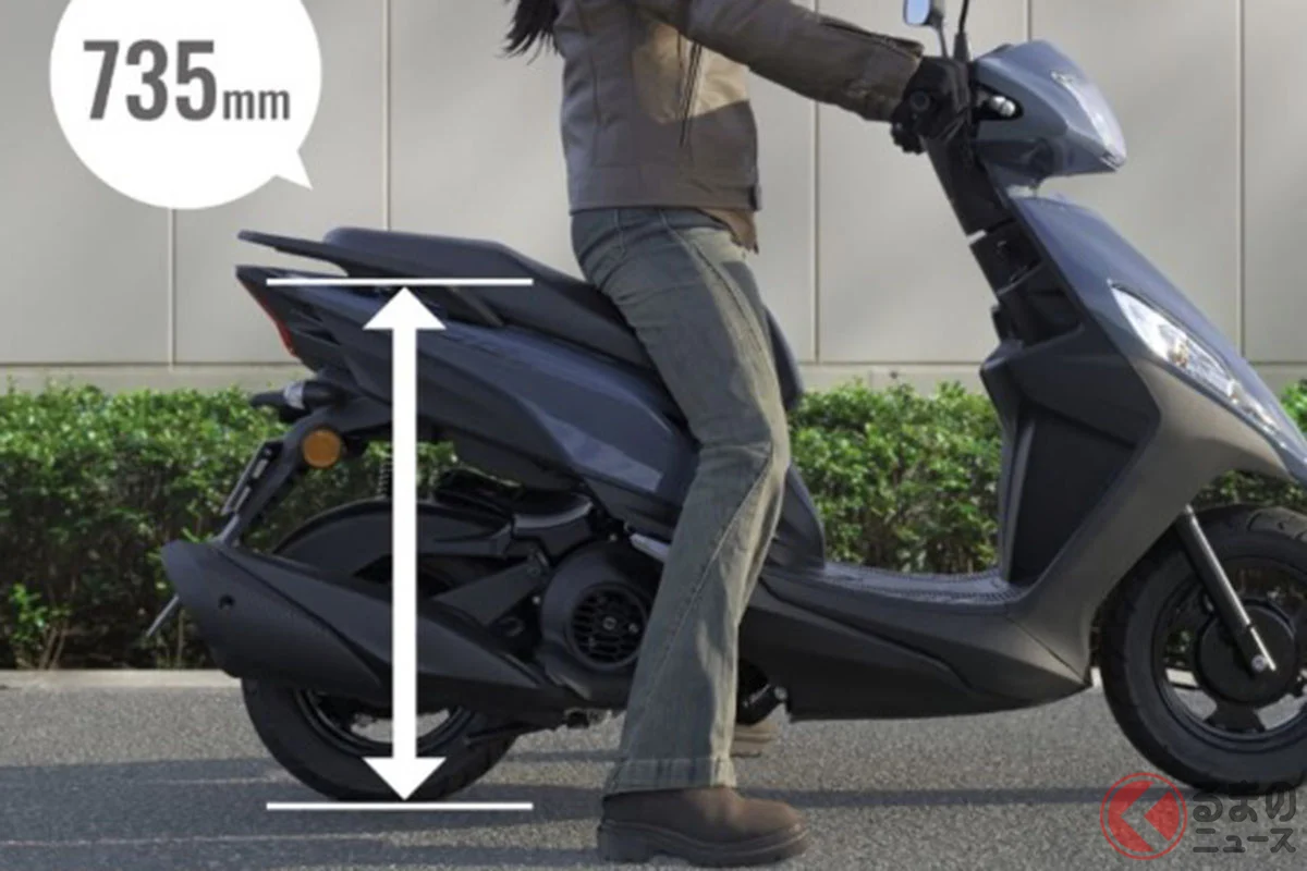 它最大的魅力在於輕量化設計,在日本原付二種級距中屬於相當輕巧的95kg車重,再加上735mm的低座高,帶來非常優秀的腳著地性與親和力。
