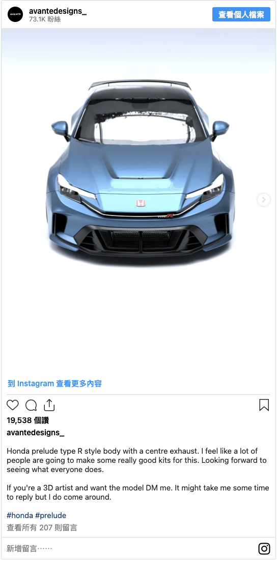 Honda作為品牌的專屬跑車(specialty car),時隔約24年再次復活的「Prelude」。如今,一張讓人期待其高性能版本「Type R」登場的概念CG,由在Instagram等平台活動的數位創作者「Avante design」製作並公開,引發大量討論與關注。