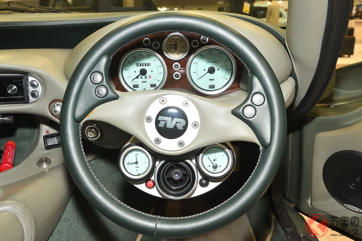 TVR特別喜歡這種「奇怪機關」。例如第二代Griffith是按車門後方開關、車內則在中控台旁拉桿開門;Chimera則是轉動排檔桿後方的鋁削旋鈕開門;1999年登場的第二代Tuscan則是按音響旁的小按鈕。