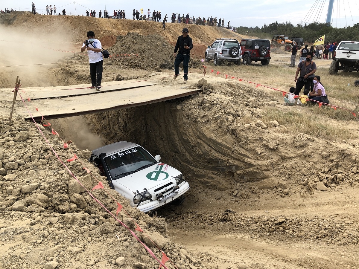 而真正引人入勝的賽事則是後者的越野障礙賽,組別會有障礙兩字,是因為這組賽事的比賽車是真的要克服很多大落差的坑洞與斜坡等障礙,才能抵達終點的賽事,起跑時車輛要先爬上高約3米的大沙地斜坡,接著連續的大坑洞,每個坑洞深約1米,有些呈現圓形、有些則呈現長條型面積,車輛開過普通車輛易掉進這些坑洞,絕對是開不出來,而這些經過加高改裝的越野車,必須讓車輛輪胎開進坑洞後,還能順利爬上來,有時候左右前輪都掉進坑洞後,車主還要想辦法透過副駕駛的引導或短鋁梯的協助才能駛出坑洞。