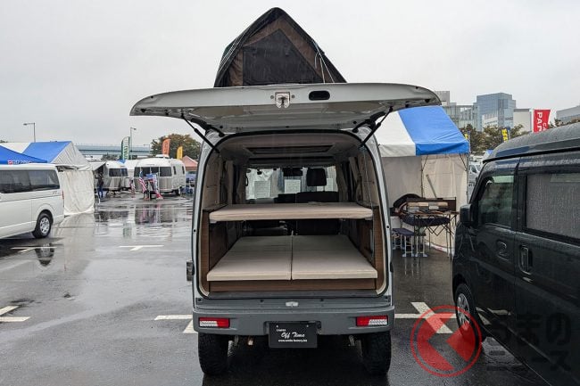 Suzuki「兩人可睡」的舒適輕型廂車超強!全長3.4m等級「小小輕型 One-Box」變身「車中過夜專用車」!停車時也能使用「冷氣」的 Smile Factory 輕型露營車「Off Time Village」成焦點