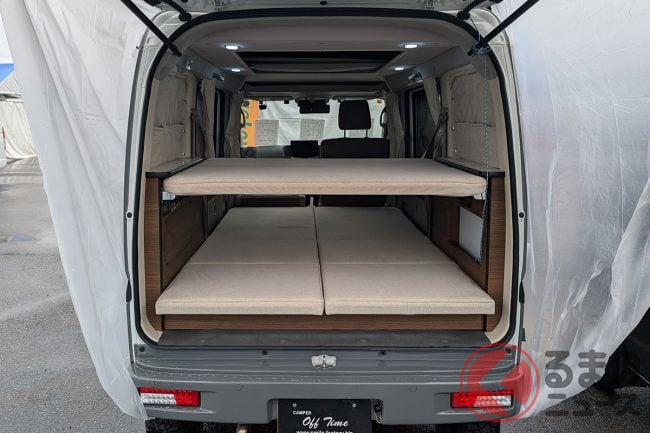 Suzuki「兩人可睡」的舒適輕型廂車超強!全長3.4m等級「小小輕型 One-Box」變身「車中過夜專用車」!停車時也能使用「冷氣」的 Smile Factory 輕型露營車「Off Time Village」成焦點