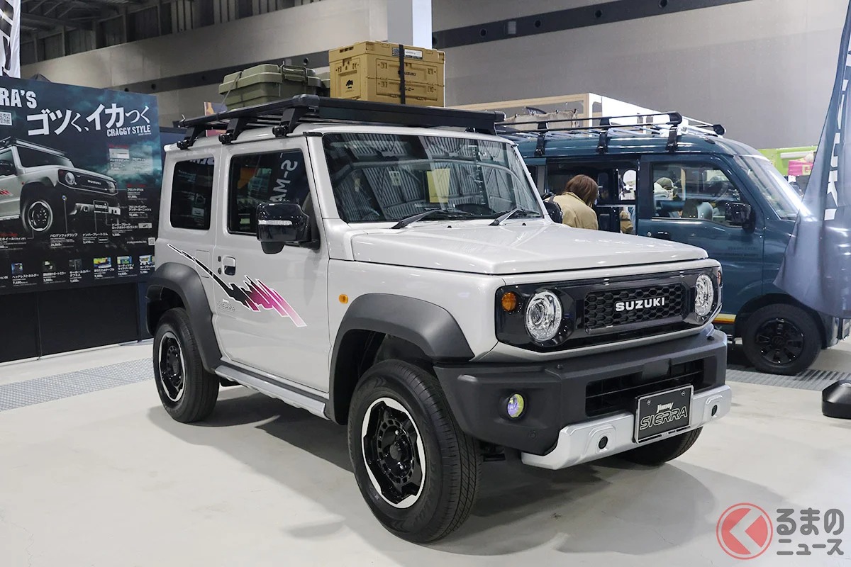 鈴木「全新」Jimny Sierra 實車展示!方正車身搭配中央的「SUZUKI」字樣,黑色前臉超帥氣!懷舊貼紙加持,復古感滿滿的「改裝版」長這樣!