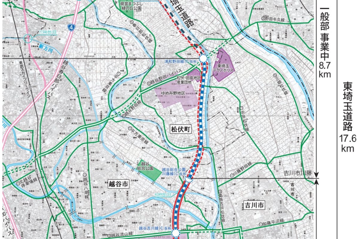 國道4號的「舒適型快速道路」──「東埼玉道路」正式通車! 從外環道可經由「日本最大間的 AEON」走捷徑,但「完全繞過越谷」還得再等等……官方公布松伏路段通車帶來的效果