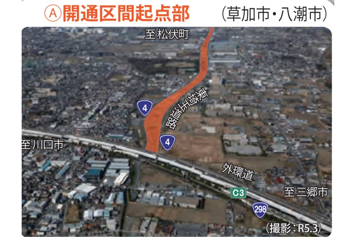國道4號的「舒適型快速道路」──「東埼玉道路」正式通車! 從外環道可經由「日本最大間的 AEON」走捷徑,但「完全繞過越谷」還得再等等……官方公布松伏路段通車帶來的效果