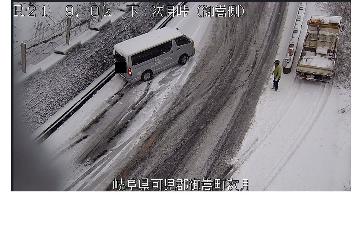 國道事務所發出嚴正警告:「一般輪胎行駛危險又造成困擾!」在大雪覆蓋的山區道路上,兩台裝夏季胎的「迷你休旅車與商用廂型車」行駛結果如預期陷車……國道 21 號「次月峠」發生車輛滯留事件,呼籲注意安全 — 岐阜
