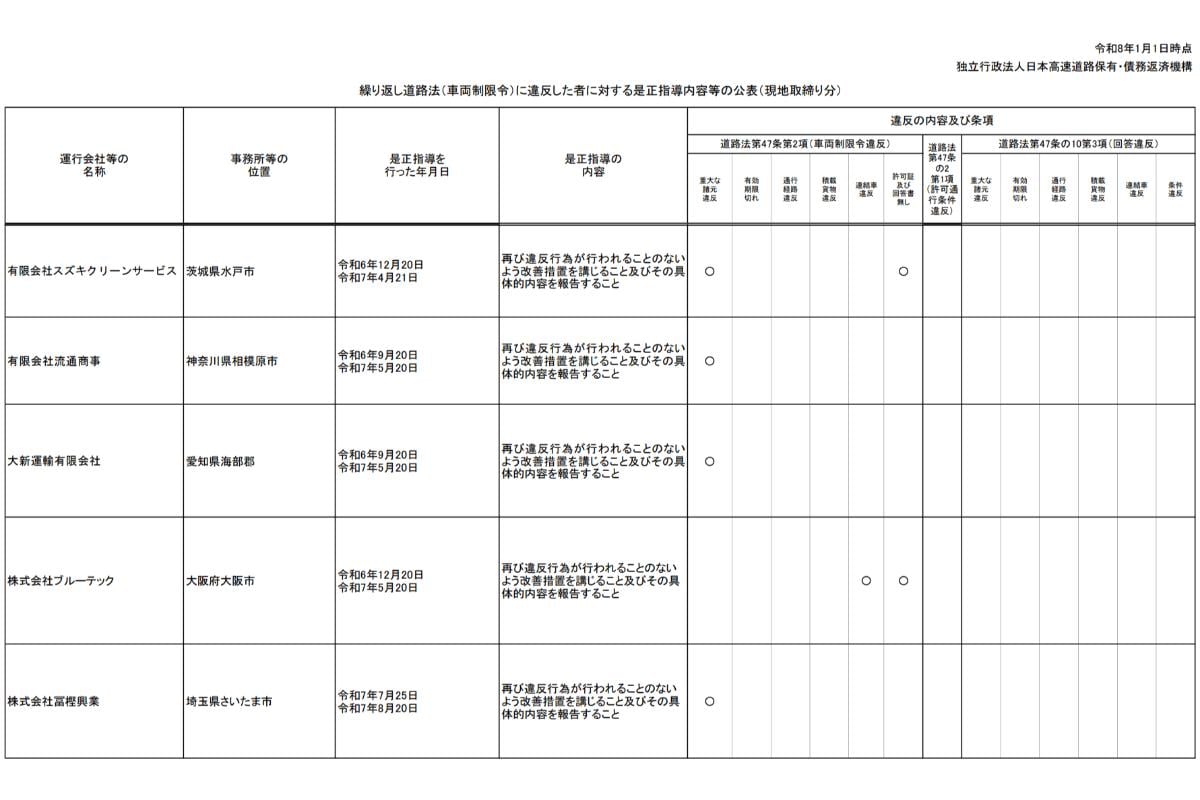 NEXCO憤怒發聲「正式提出告發!」4年內竟多達22次「違規通行」,點名公布「惡質業者」!完全「無意遵守規定」,多次反覆行駛「不符規格車輛」……並對外公開改善指導內容