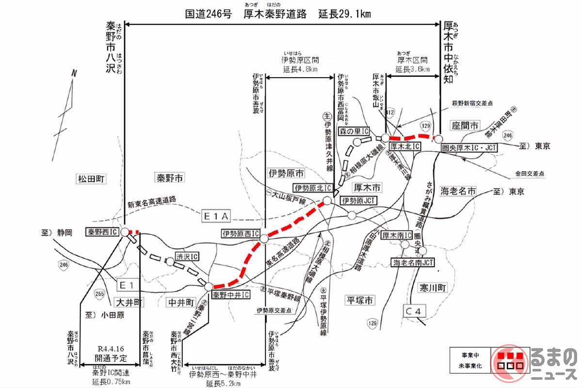 國道246號「一路慢慢爬的地獄級塞車」有望改善! 連接圈央道與秦野、全程「30公里無紅綠燈直通」的夢幻替代道路正在興建中! 神奈川縣中西部可「完全不必停車通過」,「厚木秦野道路」究竟有多厲害?