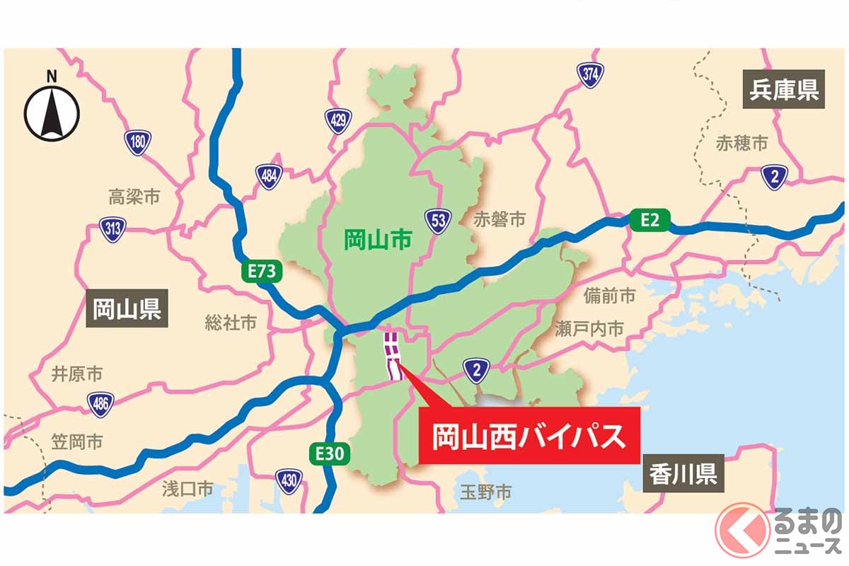 國道2號的「快速繞道」笠岡繞道正式通車!壯觀的倉敷~福山「零紅綠燈」道路再往完成邁進一步!全長55公里的「超猛繞道」中,笠岡區段側車道開放通行,道之驛使用更方便!