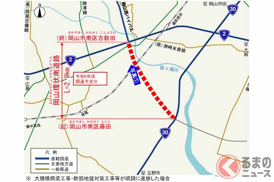 國道2號的「快速繞道」笠岡繞道正式通車!壯觀的倉敷~福山「零紅綠燈」道路再往完成邁進一步!全長55公里的「超猛繞道」中,笠岡區段側車道開放通行,道之驛使用更方便!
