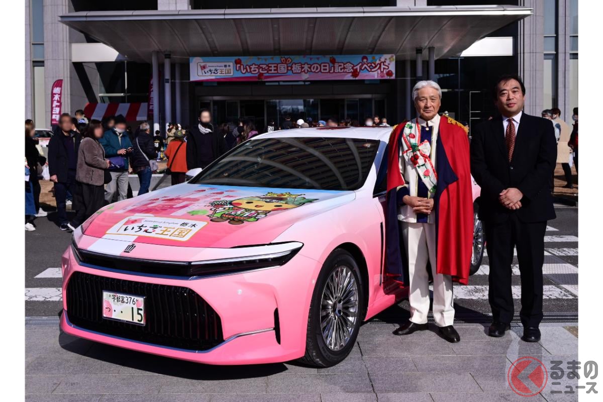 車牌「15」號!Toyota「粉紅Crown」復活了!? 第三代「草莓特仕版」為何誕生?「難道真的會量產上市?」栃木縣為了宣傳名產而公開亮相