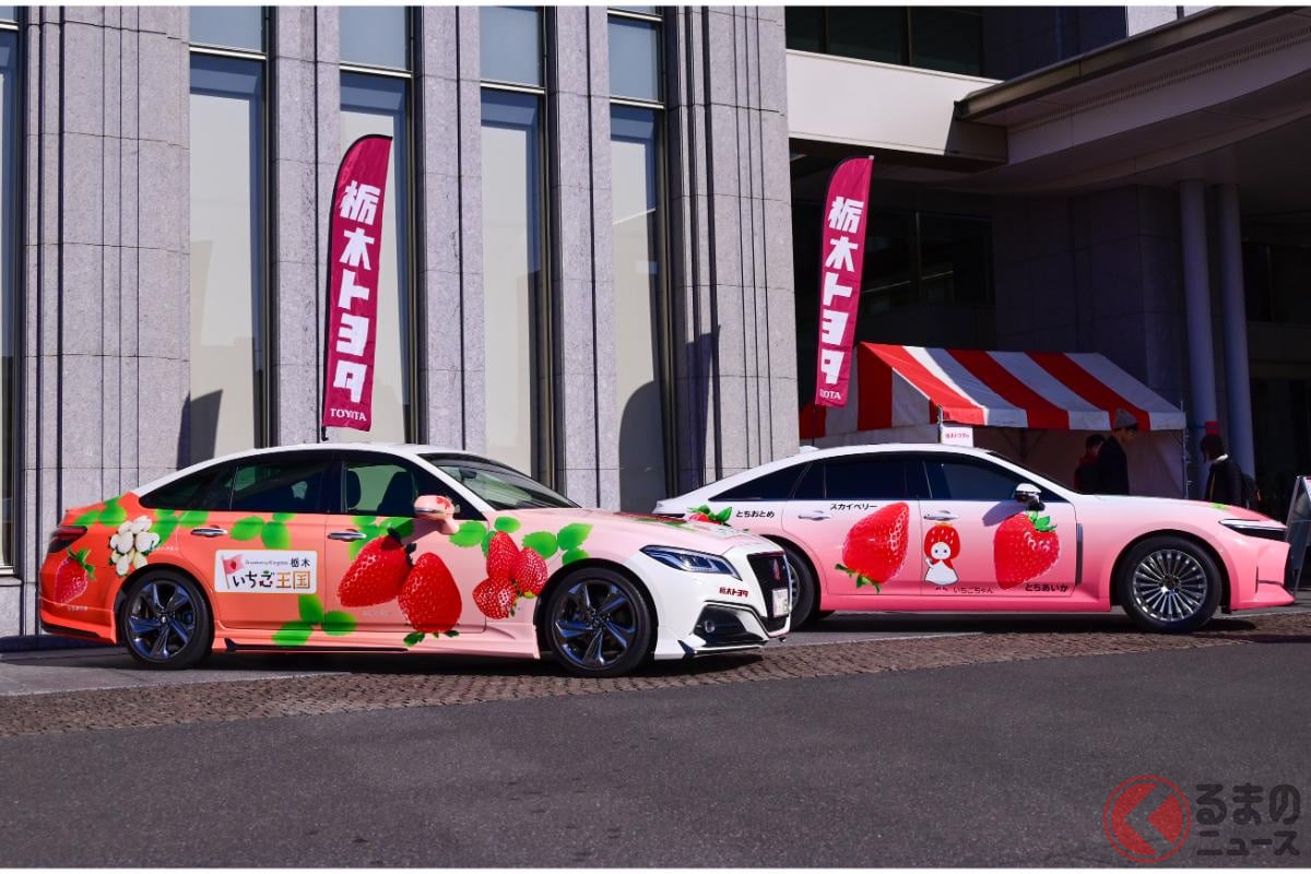 車牌「15」號!Toyota「粉紅Crown」復活了!? 第三代「草莓特仕版」為何誕生?「難道真的會量產上市?」栃木縣為了宣傳名產而公開亮相