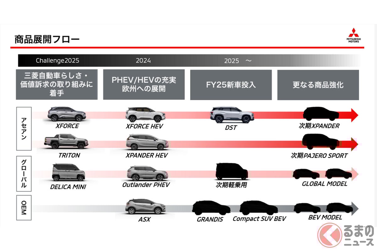三菱「3列・7人座SUV小型minivan」受到關注! 精悍到不行的“tough face”×全長約4.6m級的「絕妙尺寸」! 針對ASEAN市場的「Expander Cross」,也讓人期待能在日本導入!