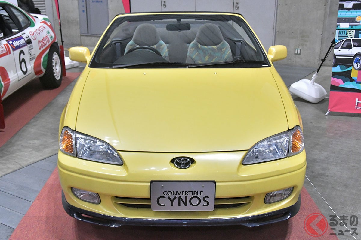 新車當時價格約160萬日圓!豐田創新的「黃色雙門敞篷跑車」現車展示!全長4.1米的「剛好車身尺寸」讓年輕人再次關注!時隔30年重新亮相的「1995 年式 Cynos Convertible」吸引了眾多目光