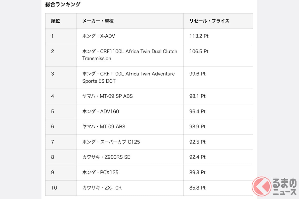 賣得最貴的摩托車是Honda「X-ADV」!? 大型速克達×Adventure,獨一無二的存在感!前幾名幾乎被Honda車款包辦!? 第55屆「Resale Price」排行榜公布