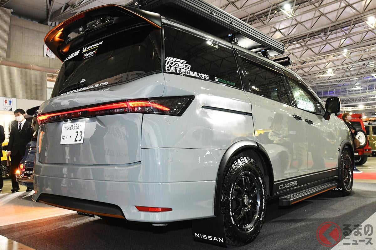 日產「Elgrand“SUV”」實在太前衛了! 採用粗獷的2段式headlight(頭燈)設計,加上40mm的lift up(車身抬高),讓它在惡路上也能輕鬆應對的「最強SUV minivan」! 日產京都校打造的custom car「Glacia」究竟是什麼來頭?