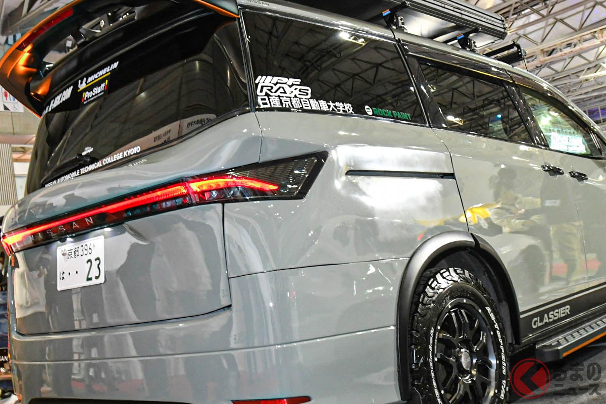 日產「Elgrand“SUV”」實在太前衛了! 採用粗獷的2段式headlight(頭燈)設計,加上40mm的lift up(車身抬高),讓它在惡路上也能輕鬆應對的「最強SUV minivan」! 日產京都校打造的custom car「Glacia」究竟是什麼來頭?