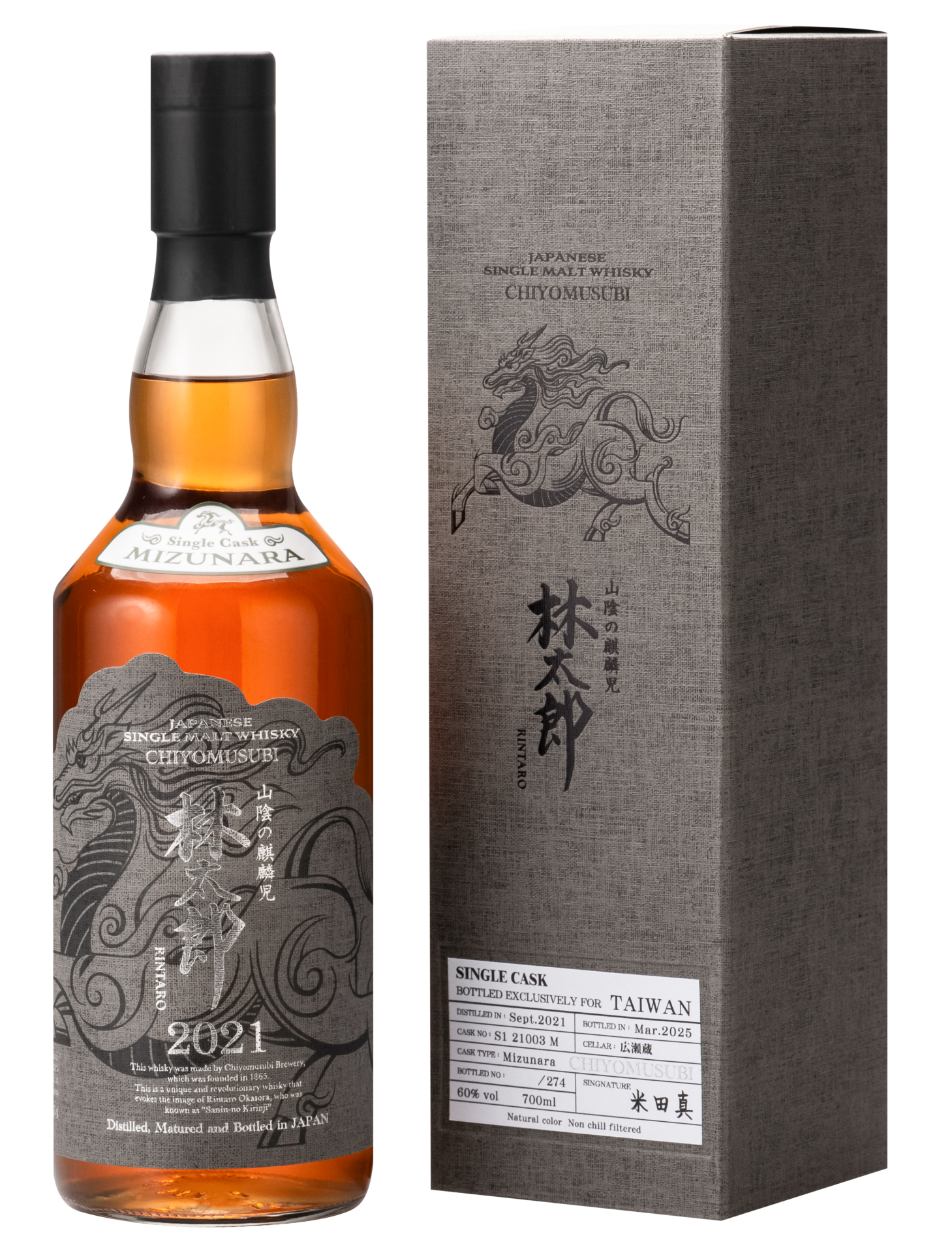 千代結酒造創立以來首次推出「水楢桶」單桶原桶單一麥芽威士忌,台灣將作為首個全球獨家和限定發售市場,顯見品牌對台灣市場的高度重視與肯定,更令人驚喜的是,每一滴「林太郎」單一麥芽威士忌,皆是歷史、風土與匠心的結晶!酒標設計巧妙融合日本傳統意象與現代美學線條,極具視覺張力!獻給堅持挑戰自我和熱愛濃醇風味的您。
