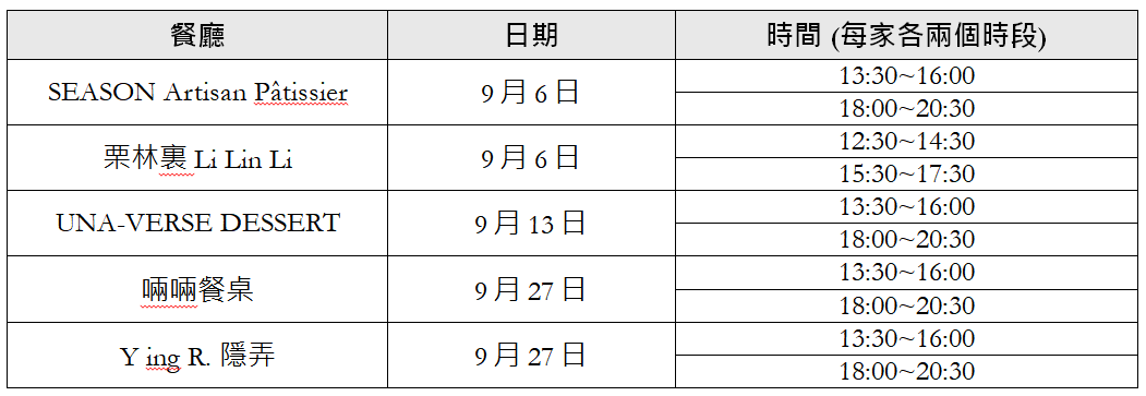 麥卡倫《甜蜜新浪潮品酩餐會》場次表