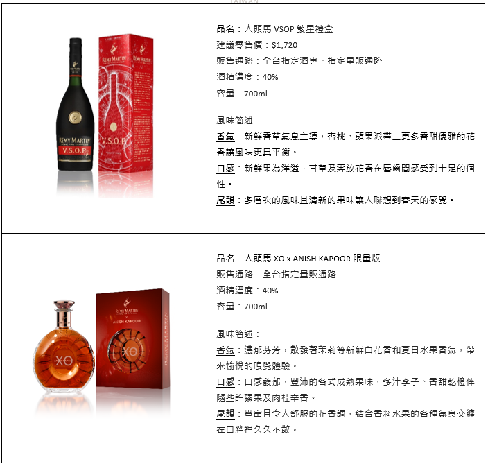 人頭馬 VSOP 作為品牌首支干邑特選香檳產區的經典之作,「人頭馬 VSOP 繁星禮盒」以紅金星空主題限量包裝登場,呼應品牌與宇宙的連結,展現對節慶歡愉的完美詮釋、人頭馬 VSOP 強大而優雅香氣的完美和諧,以及首席酒窖大師醇厚製酒藝術。閃耀金色的酒液,新鮮香草、杏桃、蘋果派的香甜,多層次且清新的新鮮水果風味,每一口都有優雅花香春天的感覺。