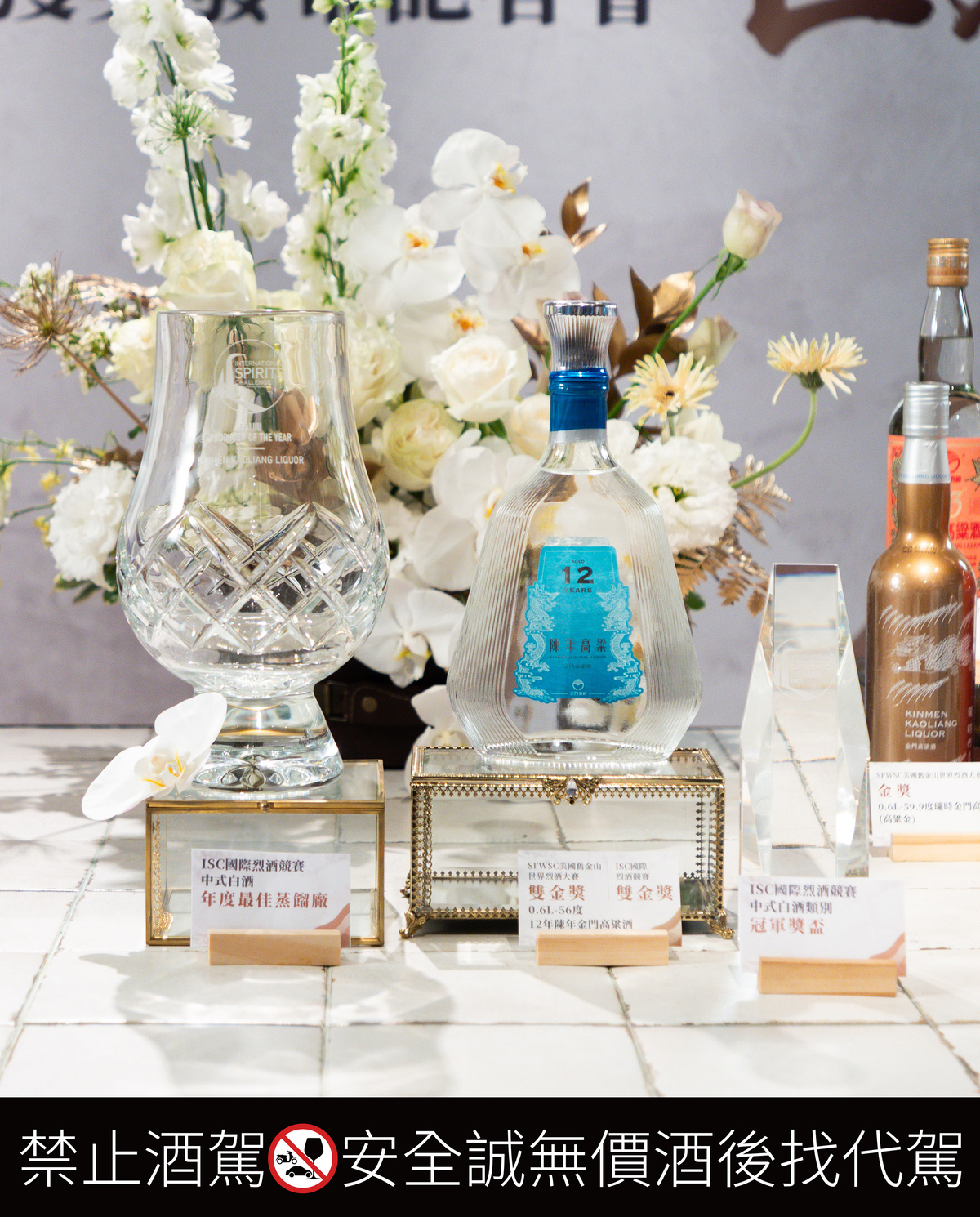 金門酒廠於ISC國際烈酒競賽再創輝煌榮耀,9月25日在英國倫敦舉辦的2025國際烈酒競賽暨30周年慶頒獎典禮(International Spirits Challenge, ISC)中,《0.6L-56度12年陳年金門高粱酒》榮獲中式白酒類別最高榮譽獎項—冠軍獎盃(Trophy in the Baijiu Category);金門酒廠則獲選年度大獎—中式白酒年度最佳蒸餾酒廠殊榮 (Baijiu Producer Of The Year),同時在該賽事橫掃21面獎牌,是台灣區唯一榮獲1面雙金獎與3面金獎的代表,也是中式白酒類別獲獎最多的品牌。今年盛典適逢ISC國際烈酒競賽 30週年慶典,吸引全球酒界權威專家與業界領袖齊聚,為金門酒廠的國際地位再添光采,成為在全球中式白酒領域上最大贏家。