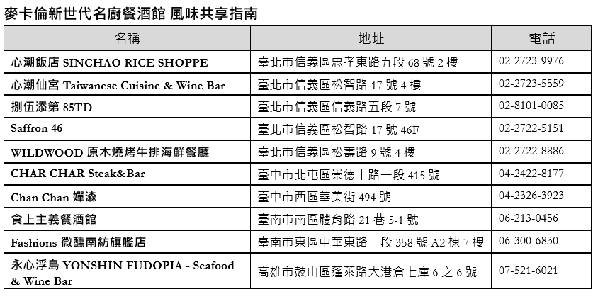 麥卡倫攜手全台新世代名廚餐酒館