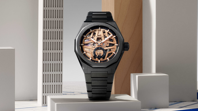 DEFY挑戰系列 Skyline Skeleton天際線鏤空腕錶將當代腕錶設計語彙推向新境界,以鏤空開放結構、俐落幾何與現代都市的視覺對比為核心特色。鏤空開放構造完整揭示El Primero 3620 SK鏤空機芯的運作全貌,光影交錯之間,呼應都會天際線所蘊含的動感節奏。如今,新作以嶄新的黑色陶瓷款式搭配金色調機芯亮相,進一步強化腕錶的建築風範,賦予其鮮明而前衛的現代都會風貌。
