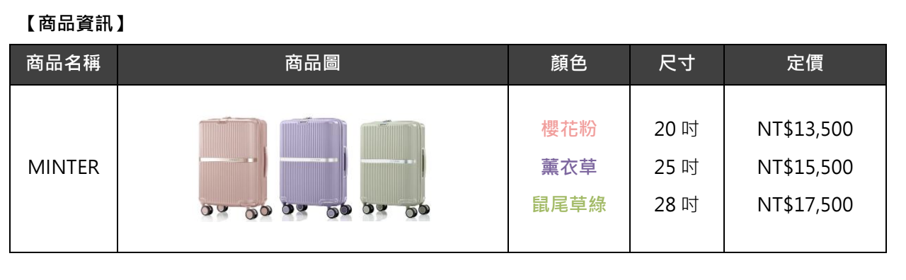 浪漫美學復興!Samsonite MINTER全新大人系柔霧色 以櫻花粉、鼠尾草綠、薰衣草紫 演繹與眾不同的春日美學