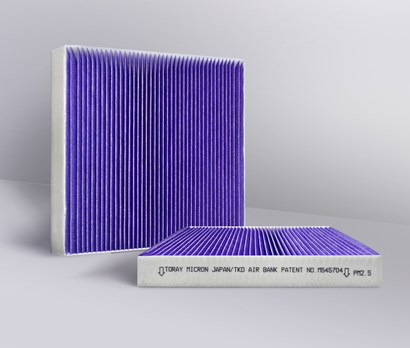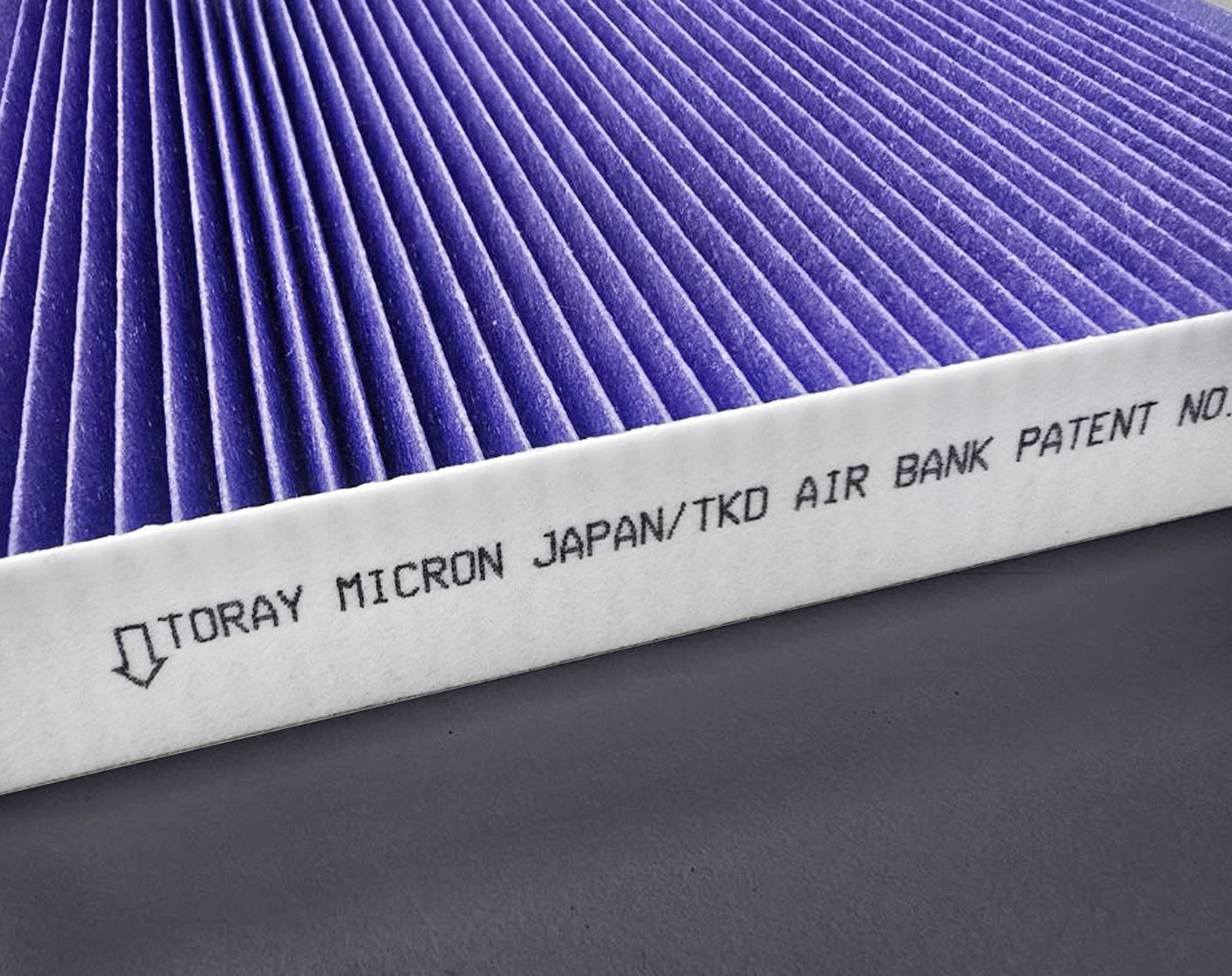 TKD 汽車冷氣濾網結合了日本東麗 Toray (Toraymicron®) 的頂尖三抗過濾布材,並融入了TKD獨家的「髒污辨識專利技術」, 從最基礎的濾塵功能,躍升為具備抗病毒、抗菌、抗過敏與除臭等多重防護效果的高效車用濾網,為車主的駕乘體驗帶來高標準的健康環境。