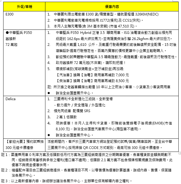 1. J SPACE 8人座旗艦型(CQ358)適用「貨物稅減徵優惠」。「貨物稅減徵優惠」係指貨物稅修正條例第十二條之五內容,包含 (1) 小客車汽缸排氣量 2,000 cc 以下新購買並完成新領牌照登記者,即可申請退還新車貨物稅最高 5 萬元 (2) 同時符合報廢出廠 10 年以上且持有 1 年以上之中古汽車汰舊換新減徵退還貨物稅規定,得再申請退還汰舊換新最高 5 萬元之貨物稅,合計最高可減徵貨物稅 10 萬元。各車型之貨物稅減徵退稅金額應視原徵收貨物稅額而定。減徵貨物稅案件之申請期限、申請程序、應檢附證明文件及其他相關事項之辦法,施行細節依政府實際公佈為準。