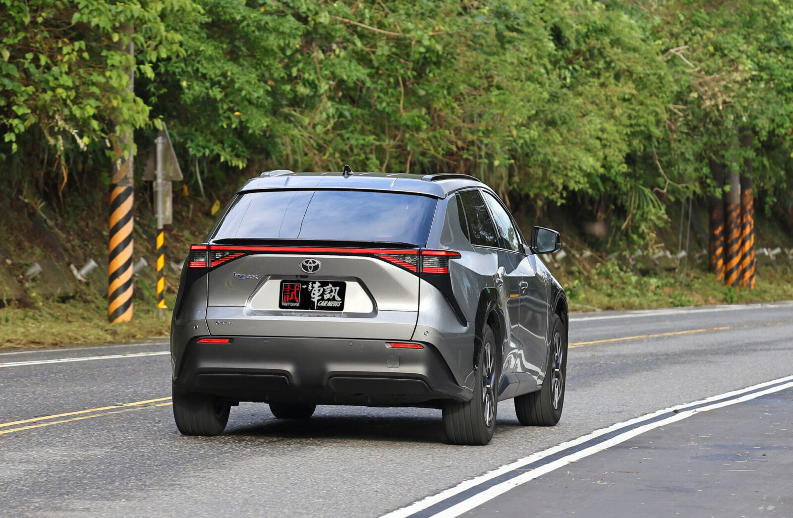 採用eTNGA專屬電動車平台架構所打造的bZ4X,除了擁有高剛性車身之外,底盤擁紮實度也相當不錯,雖然小改款後的前麥花臣、後雙A臂懸吊仍採偏舒適的軟調設定未變,但因重心低使其貼地性與穩定性相當好,加上支撐性足夠的懸吊也有著不錯的過彎側傾抑制表現,因此無論是高速變換車道或在山路彎道快速行駛,都能擁有讓人從容操駕的穩定感與乘適性,尤其小改款後方向盤的輔助力道調校得更為細膩且輕重拿捏得宜,而賦予了此車輕巧好上手的駕馭特性。