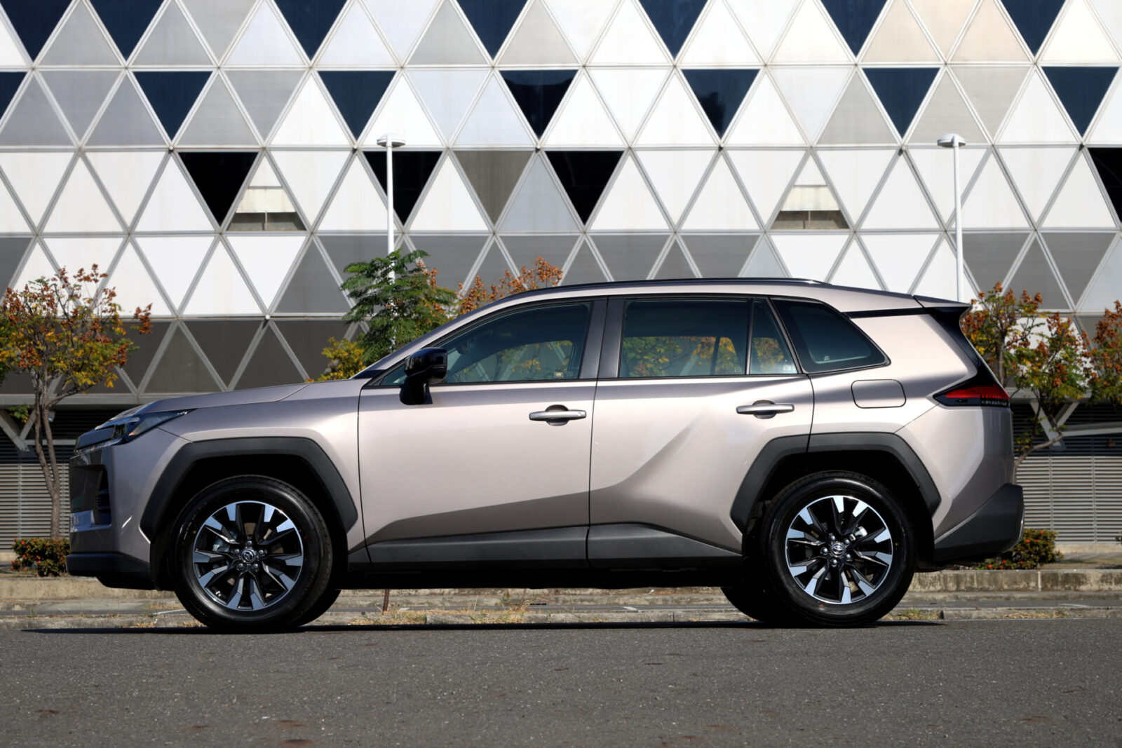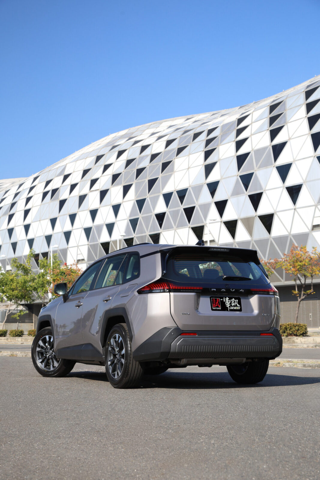 這次試駕的Core旗艦版車型,其車頭採用原廠稱為「錘頭鯊」的設計,並搭配家族特色濃厚的全新雙刃光條式的LED日行燈以及LED Bi-Beam頭燈組;而保桿兩側也有大開口的C字型進氣口,內部則鑲嵌圓形LED霧燈;另外,與車身同色的漸層式蜂巢狀水箱護罩,則仿效Lexus RX設計,營造出高級時尚且帶有科技感的視覺意象。車側除了擁有有銳利的鈑金摺線與肌理線條之外,18吋雙肋五幅式雙色切削鋁圈搭配外突的黑色輪拱與霧黑的車側下護板,而塑造出強壯洗練的力量感。至於車尾則擁有全新細長造型的條列式LED尾燈組,整合鑲嵌有RAV4字樣與廠徽的中央黑色烤漆飾條,帶來貫穿式的視覺感受。