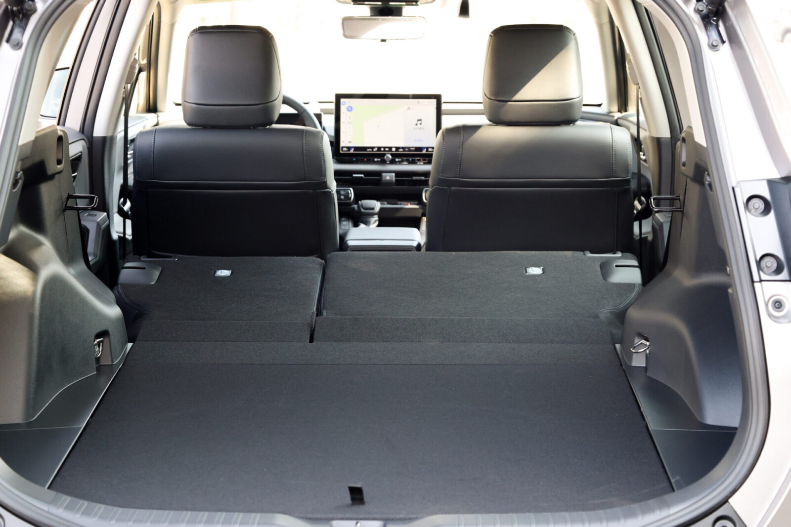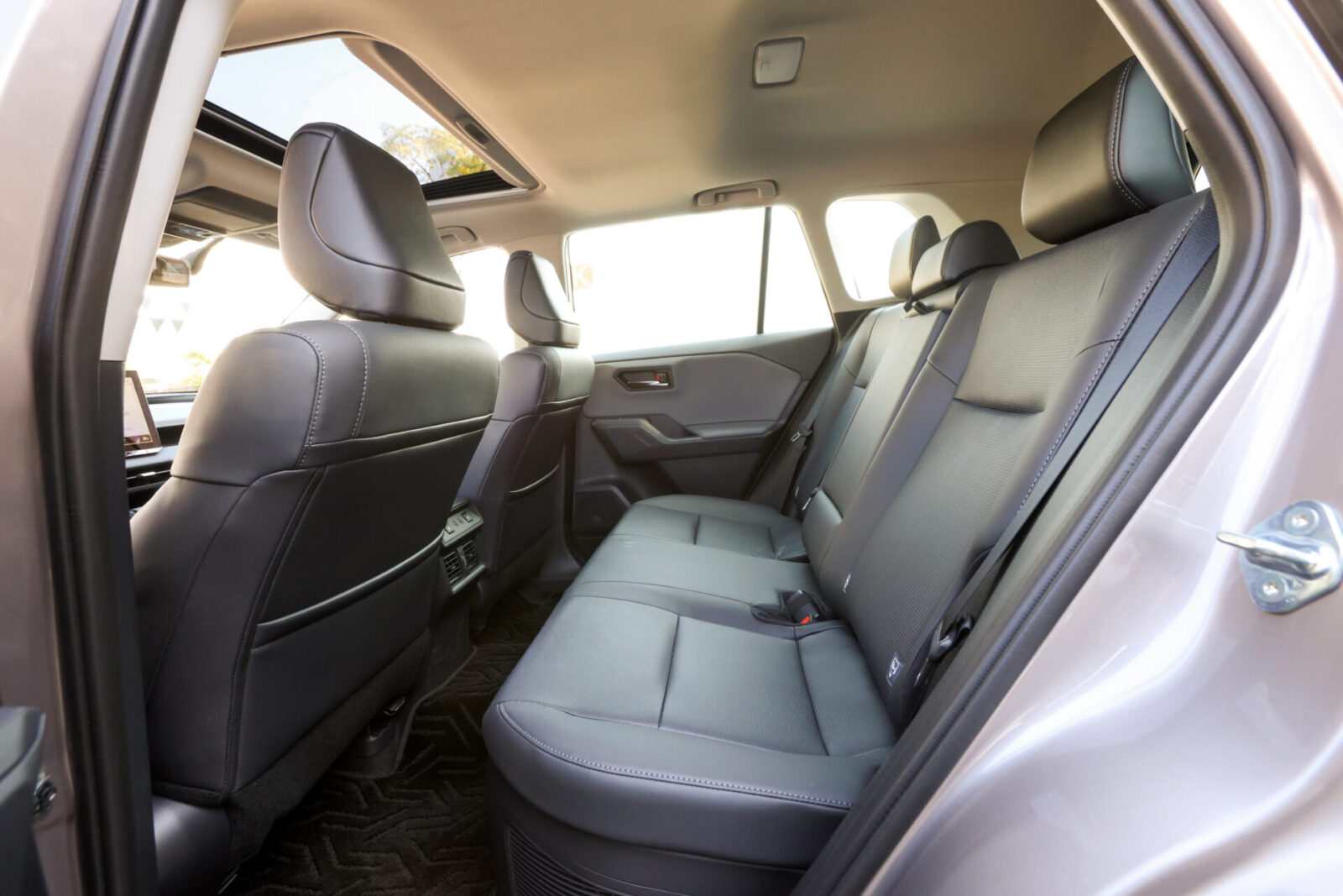 就如前文所述,全新六代RAV4的車身尺碼與上代相比,僅車高低了5mm,其他車長、車寬與軸距皆相同(Core車型),因此整體的車室空間規劃與後座乘坐空間表現並沒有明顯差異。首先坐起來相當舒服的雙前座,旗艦版除採高級皮質包覆之外,雙前座更具備8向電動調整功能(駕駛座2組記憶),同時也是車系中唯一同時具備通風與加熱功能的車型。其次後座以175cm的成人實際乘坐,膝部離前椅背有2個拳頭,頭部離頂篷同樣約有2個拳頭空間,以這樣的表現在同級距車款中可說數一數二了,且後座椅墊長度也是做足,加上泡棉軟硬適中,椅背角度也能做2段調整,因此乘坐起來頗為舒適,加上原廠也為後座乘員提供有出風口、2組15 W的Type C充電孔以及電熱椅功能,貼心度可謂十足。