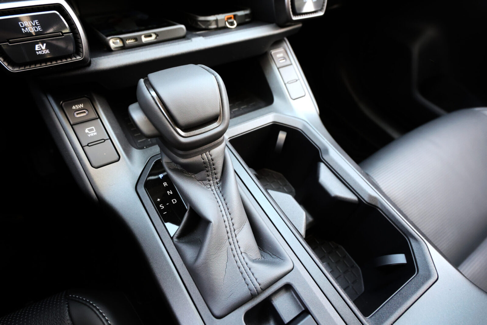全新RAV4的內裝鋪陳格局走得是大器沉穩的多層次水平布局,但也透過許多方正硬派的造型設計來彰顯出SUV應有的粗獷氣息。至於車艙內的質感呈現,只能說塑感依舊,但所幸這些軟/硬塑材的觸摸質感或是壓花處理已有進步,因此並不會給人廉價的感受,反倒是藉由12.3吋數位儀錶、12.9吋懸浮式中控螢幕主機、HUD抬頭顯示器、雙座Qi無線充電座以及E-Mirror車內電子後視鏡等科技配備,而帶來前所未有的數位科技座艙氛圍。